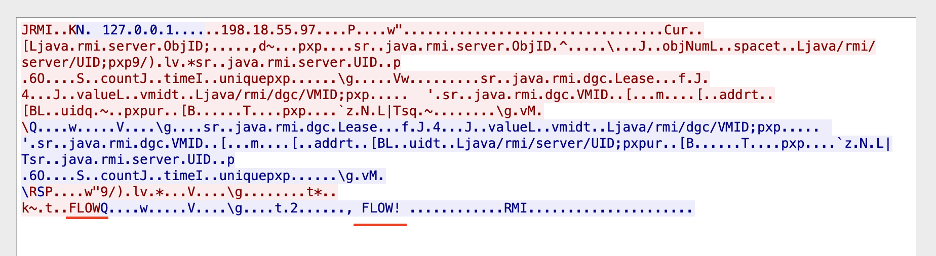 wireshark开一个本地抓包,粗略看一眼就可以发现有很多RMI协议的包,当然前后的TCP包也要注意