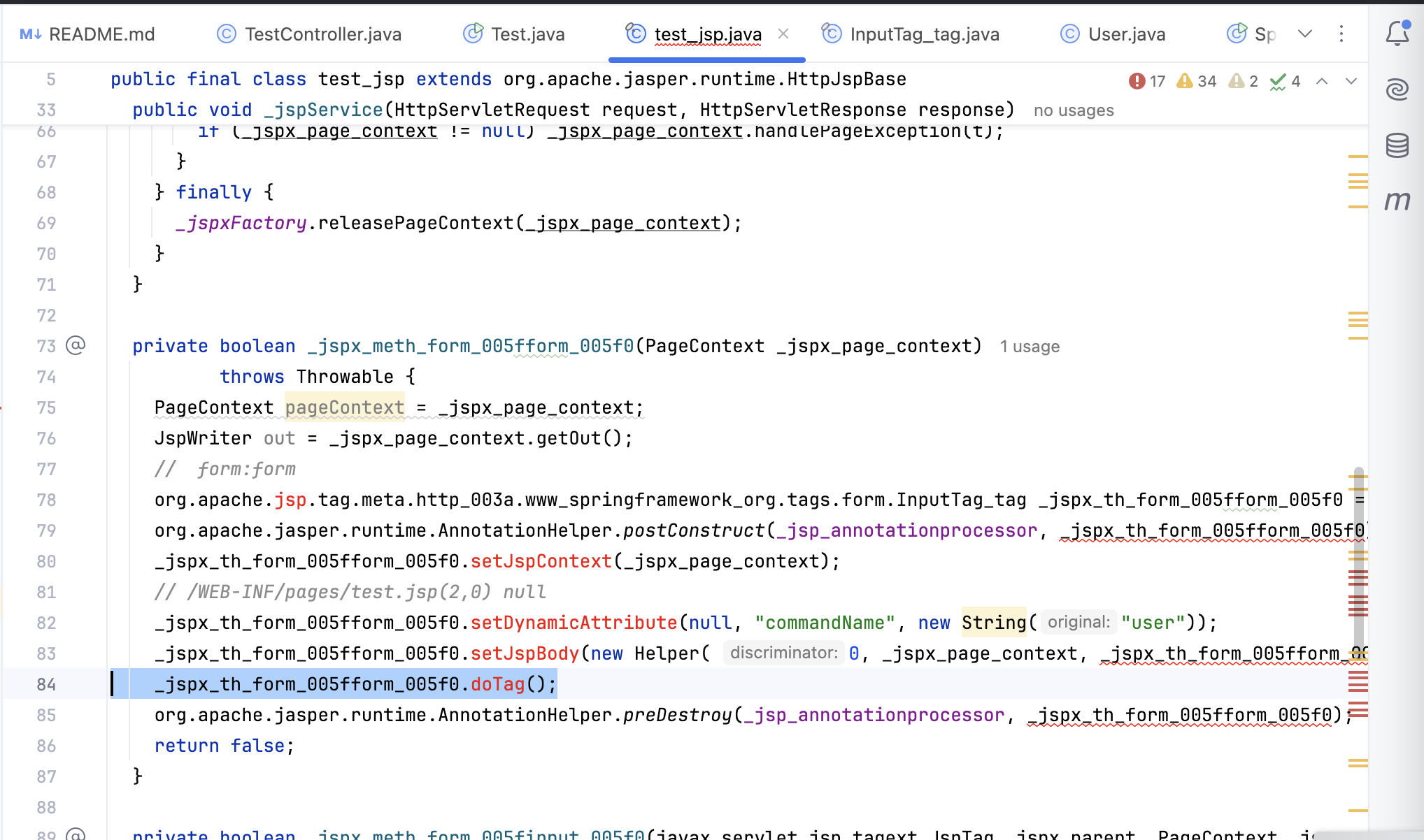 对应InputTag_tag.java里面的doTag,可以看到恶意代码已经加载进入文件里了